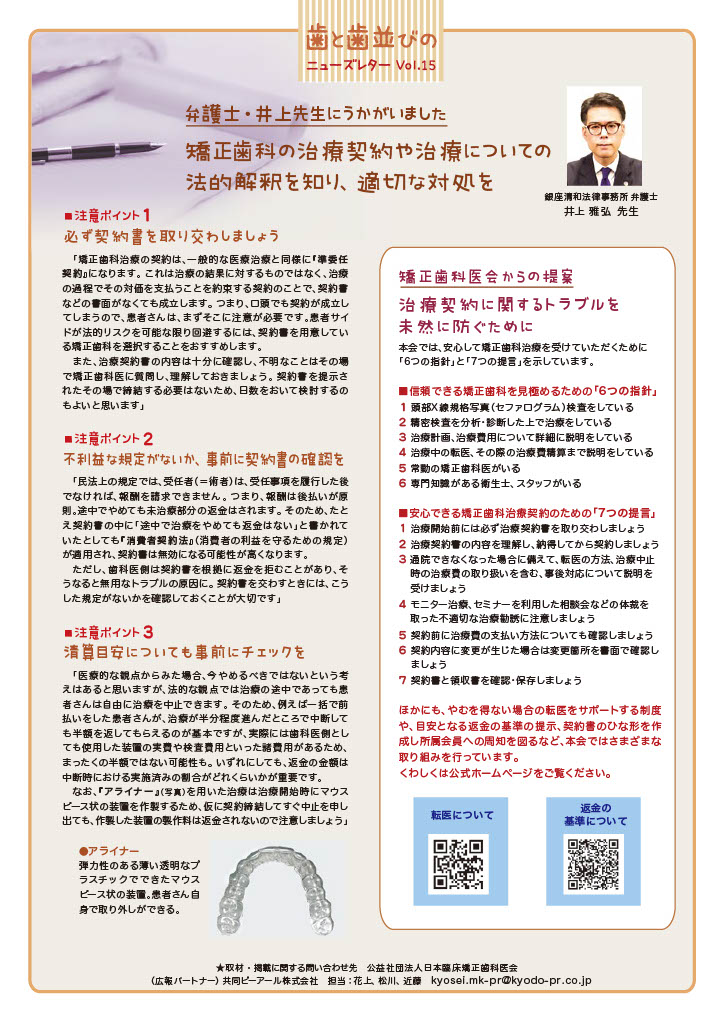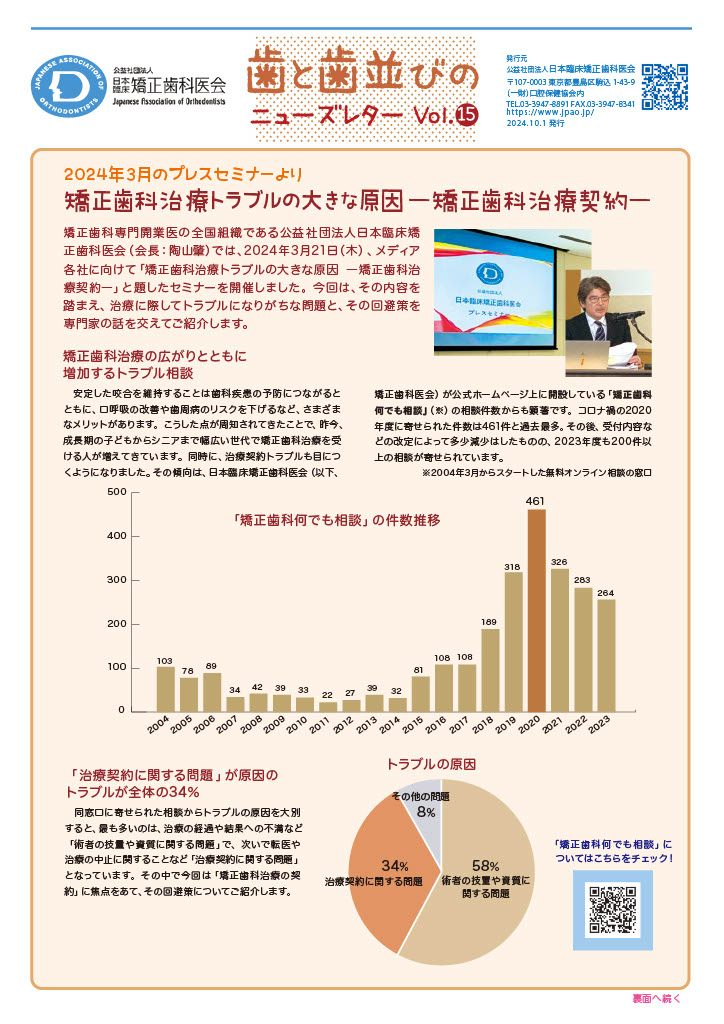 「歯と歯並びのニューズレターVol.15」PDFデータはこちらから取得できます。