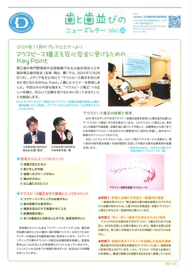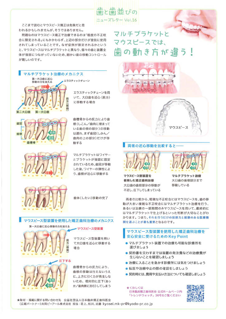 「歯と歯並びのニューズレターVol.16」PDFデータはこちらから取得できます。